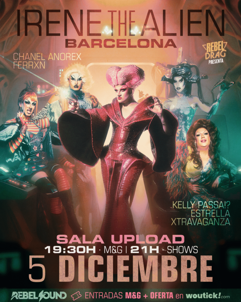 Irene the Alien en BARCELONA: El 5 de diciembre llega a sala Salamandra una noche drag fuera de este planeta. Y atención: la nave viene cargada de estrellas de Drag Race España: Chanel Anorex, Ferrxn, Kelly Passa!? y Estrella Xtravaganza.